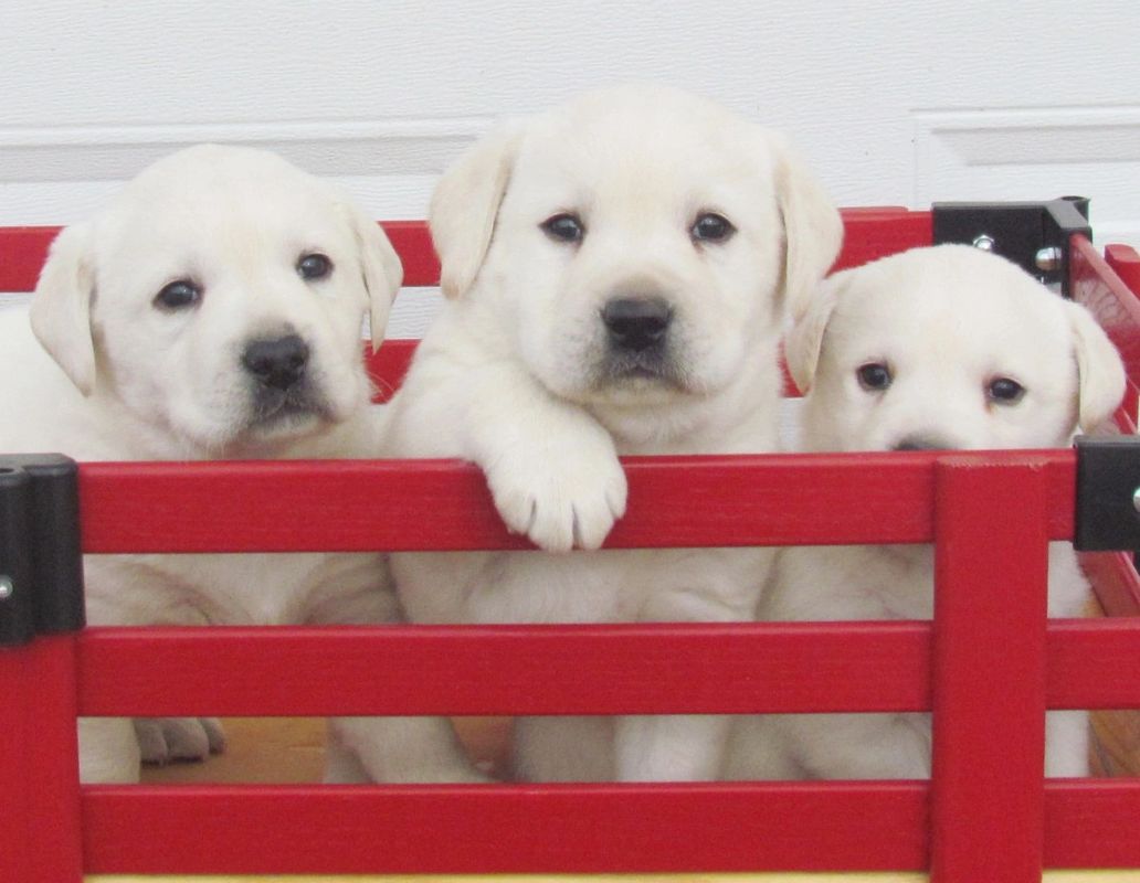 White labrador puppies love running, jumping, and playing outside just as much as any other labrador retriever.